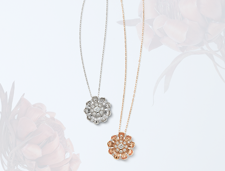 Special jewelry created from the original content "SA MAGAZINE" currently being serialized on the official SA BIRTH website. The pendant created with Hiroko Hatano, who appeared in the first episode, was created with the motif of the petro, a flower native to South Africa that gives the impression that it is blooming right there.