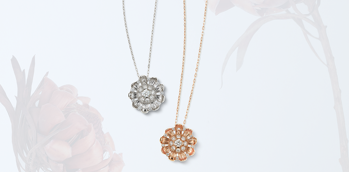 Le noyau intérieur arrondi et la partie pétale qui l'entoure peuvent être appréciés non seulement seuls, mais aussi dans un mélange audacieux de matériaux, en superposant les deux ou en les superposant, avec Petro. Ce bijou en diamant est doté d'un pendentif qui lui confère un impact moderne.
